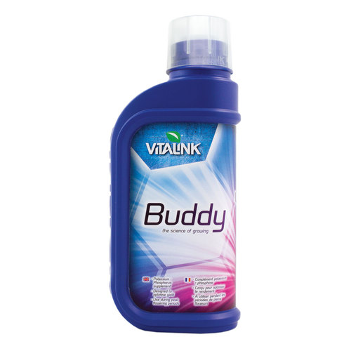 During flowering, plants need extra phosphorous and potassium (PK). Vitalink Buddy is a supplement containing a good source of PK, ensuring that your plants do not run short of these quickly used nutrients when they need it most. Vitalink Buddy is an easy-to-use flowering booster that can be used early on, from the third week of flower. Vitalink Buddy also contains other ingredients such as extra magnesium to ensure healthy and heavy flowering.